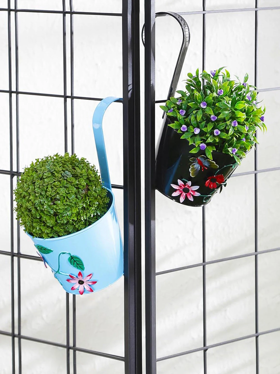 Be the first to review “Set Of Two Flower Embossed Railing Planter Blue & Black” Cancel reply